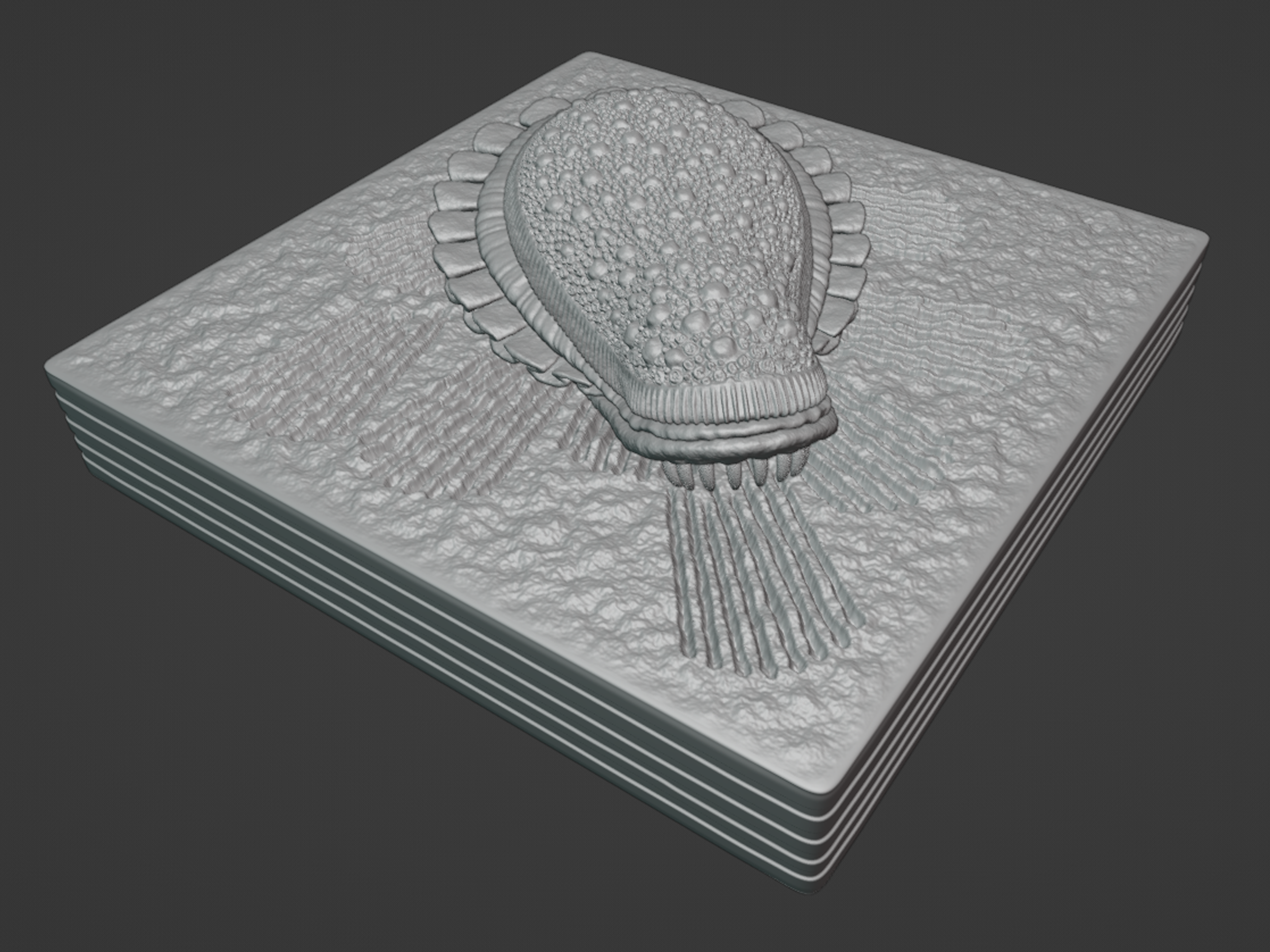 The Cambrian Period saw the emergence of many modern animal groups. It’s also notable for the widespread adoption of hard, mineralized body parts like shells, bones, and teeth that preserve far better than soft tissues. The time period before the Cambrian is referred to as the Ediacaran Period. Rocks from the Ediacaran Period do preserve animal fossils as well, but it’s in a way that doesn’t rely upon the durability and preservation potential of mineralized parts. This is because Ediacaran organisms, by all accounts, didn’t have hard parts to preserve. Rather, they were soft-bodied and are preserved only as impressions on the seafloor, usually after being rapidly buried. In addition to rapid burial, the presence of microbial mats in the environments where these Ediacaran organisms lived also contributed to their anomalous preservation. Microbial mats in the Ediacaran Period were able to bind sediment of the seafloor together and hold the animal’s form as an impression, allowing for a finer and longer-lasting chance at preservation. It is in this type of microbial mat-dominated marine environment that a soft-bodied animal named Kimberella lived and was preserved. Kimberella is often considered to be a mollusk, similar to a gastropod (example: snail), or is at least considered to be some primitive precursor animal to the group that would later yield mollusks. Kimberella had a body that varied from egg-shaped to pear-shape in outline, which might imply that the body was fully capable of stretching along its length. It had a shell-like covering on its back that was likely soft, rather than mineralized, due to observed elongation and deformation during preservation. Kimberella had a wavy fringe, similar to a pleated skirt, that encircled most of its perimeter and extended outward from what might be described as a muscular foot similar to that of a gastropod like a snail. The muscular foot of a gastropod is the part of the body that contacts the ground and is responsible for locomotion. At what appears to be the front of the animal is a head with a feeding organ lined with what would have possibly been teeth, although teeth aren’t directly preserved. The reason these teeth are considered to have existed is because Kimberella fossil impressions are associated with a trace fossil referred to as Kimberichnus that reflects the use of these supposed teeth. The trace fossil Kimberichnus consists of a set of linear grooves arranged into a fan shape, and these traces are often found associated with microbial mat features and Kimberella impressions in the rock record during the Ediacaran Period. The trace fossil Kimberichnus is interpreted as the result of Kimberella using an arc-shaped set of teeth on its feeding organ to rake through a microbial mat. This raking motion would leave behind a set of linear grooves, corresponding to the arrangement of the teeth, as the microbial mat is ripped up from the seafloor for consumption by Kimberella. The Kimberella body and Kimberichnus trace fossil 3D models are based on research and ecological interpretations by Ivantsov (2009) [Paleontological Journal, v. 43, p. 601–611] with some features of Kimberella drawn from the work and interpretations of Fedonkin and Waggoner (1997) [Nature, v. 388, p. 868–871]. Any errors or misinterpretations of anatomy are my own. Kimberella and Kimberichnus 3D models designed by Scott Mata in Blender v3.6 and printed on an Elegoo Saturn 3 resin printer using Elegoo ABS-Like Resin.